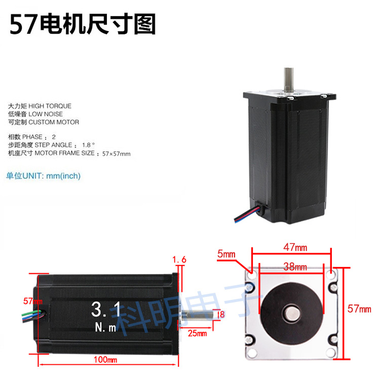 57 single and double output shaft high torque stepping motor 3 1N m body 100mm two phase 4 wire 1 8 degree warranty 1 year