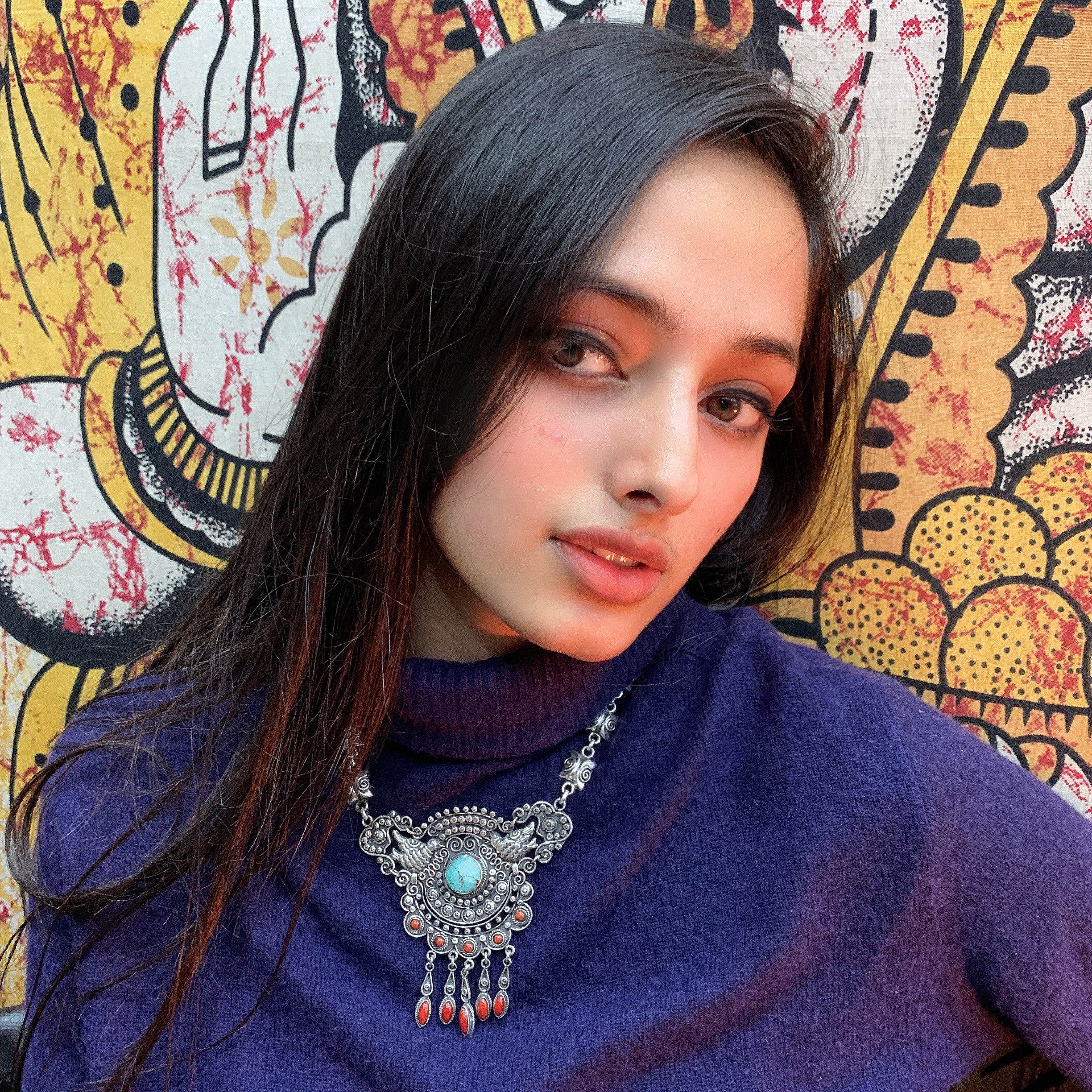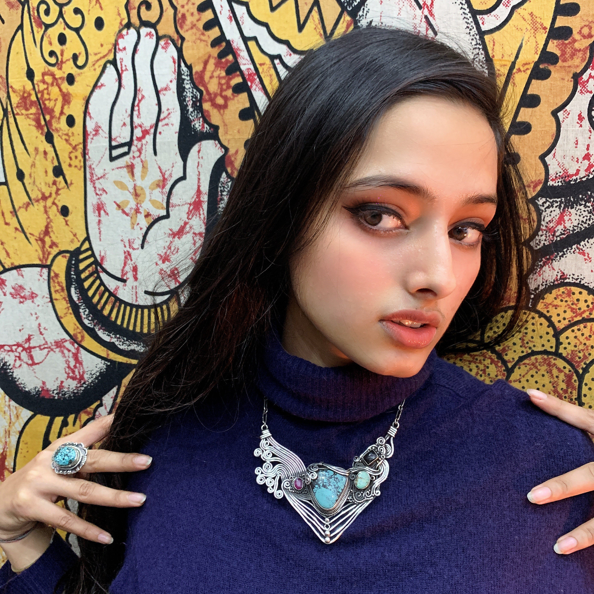 (soloni) Pure hand-set natural 925 silver turquoise multi-treasure vintage Tibetan necklace