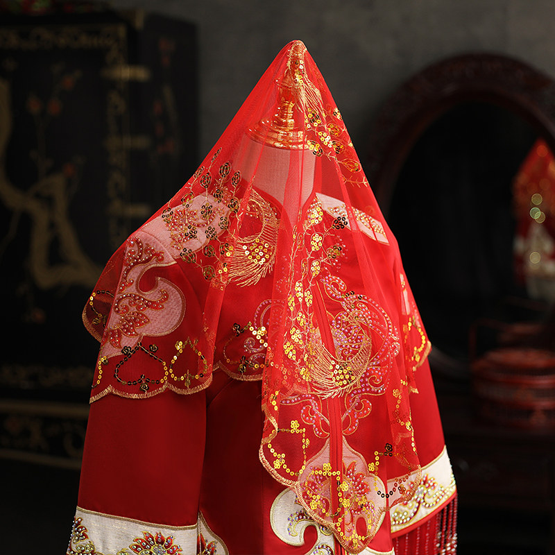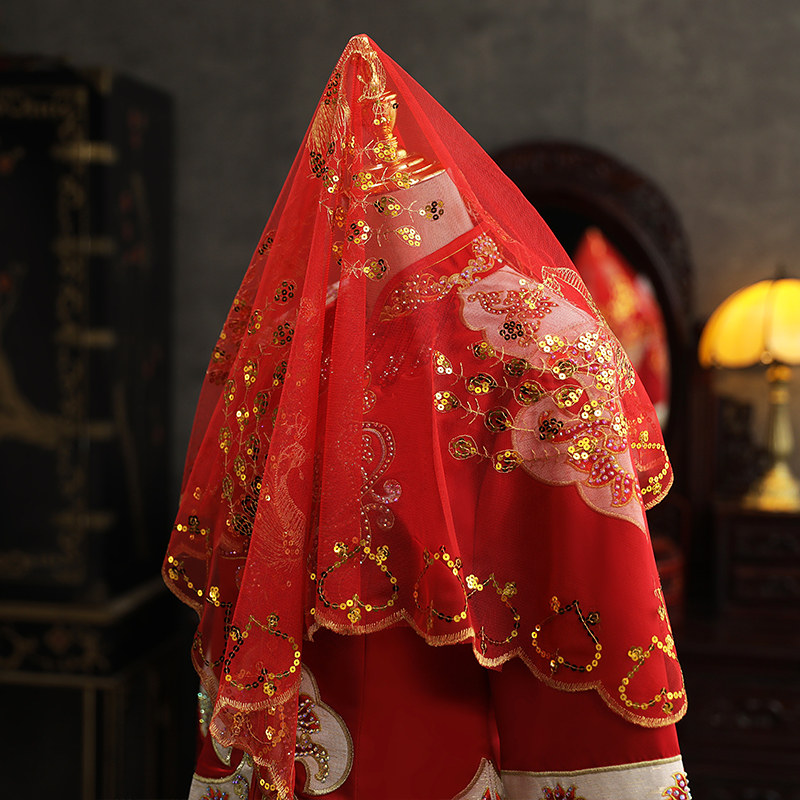 Red cover bride Chinese embroidery red head palm wedding veilWedding veilWedding red yarn