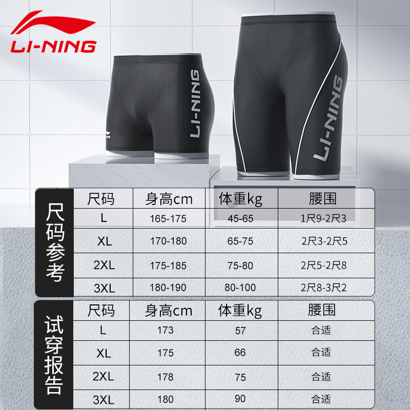 Li Ning Swimming Pants Men's Flat Corner Swimming Pants Speed Dry Adult 50% Swimsuit Men Suit Spa Professional Swimming Gear