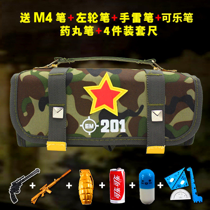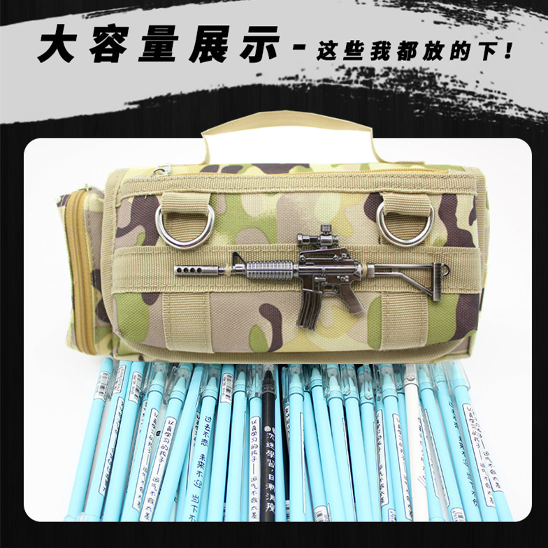 Pen Bag Creative Guy Boy Pen Bag Elementary School Student Pencil Case Canvas Large Capacity Lead Pencil Case Pencil Bag Rifle Pen Bag Camouflak pen bag (send cool 6 pieces of gift) -Taobao