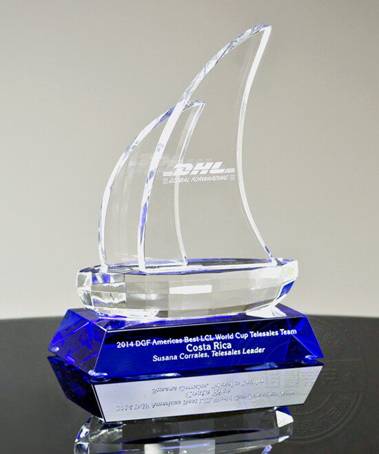 Normantic crystal sailing trophy new sapphire blue creative smooth sailing trophy personality company business gift