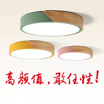 Nordic macaron ceiling lamp simple modern ultra-thin round led Solid Wood lamp children's room study lamp
