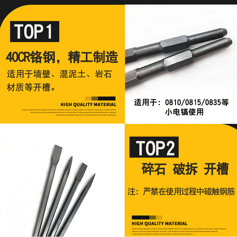 Hexagon extended sharp chisel (380mm)Hexagon extended flat chisel (380mm) Hexagon extended sharp chisel(600mm) Hexagon extended flat chisel (600mm)Hexagon extended sharp chisel 80