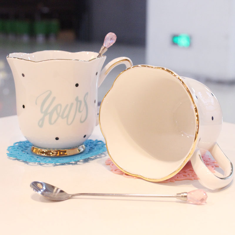 Creative European coffee cup flower tea cup set ceramic mug with spoon couple water cup gold trend water cup