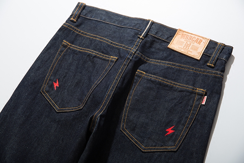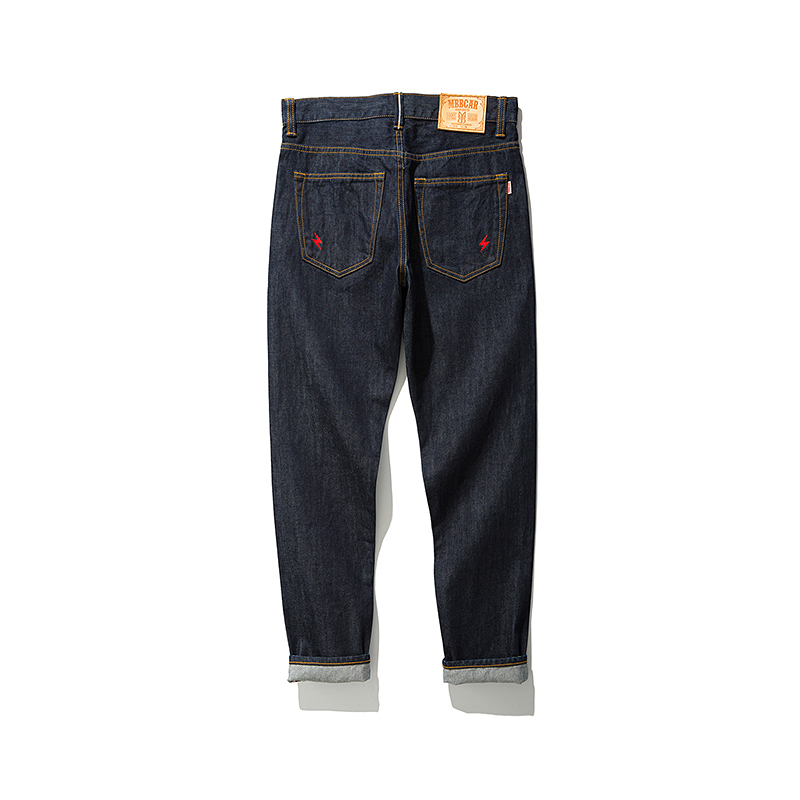 Japanese tide Aramco Lightning Embroidery Nine Sockets MBBCAR Narrow Washing Indigo Vertical Jeans