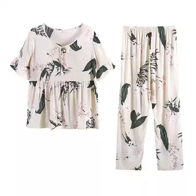 Pajamas women Summer faux cotton short sleeve trousers thin set Korean version plus size cotton silk home clothing air conditioning clothing