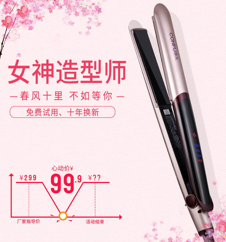 Kangfu splint straightening plate curling rod ceramic glaze straight roll dual-use computer temperature adjustment student hair straightener KF529