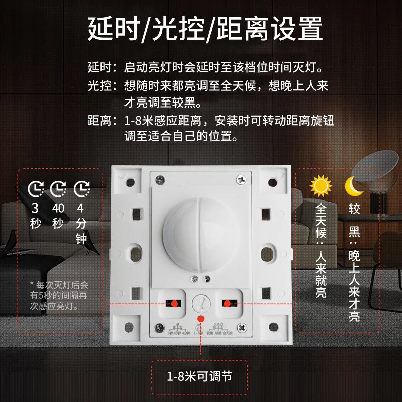 Home intelligent delay light control radar microwave human body induction switch 220V corridor close to 86 induction light switch
