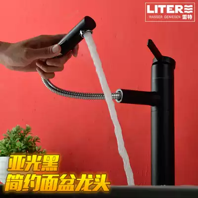 Matt black bathroom hot and cold basin faucet can be pulled with ordinary version