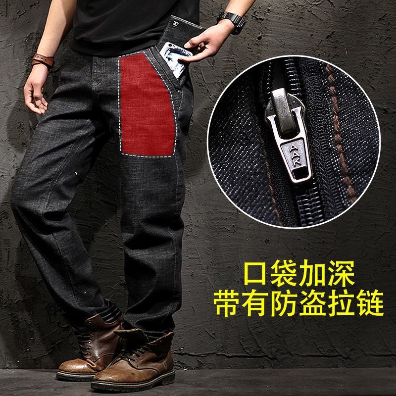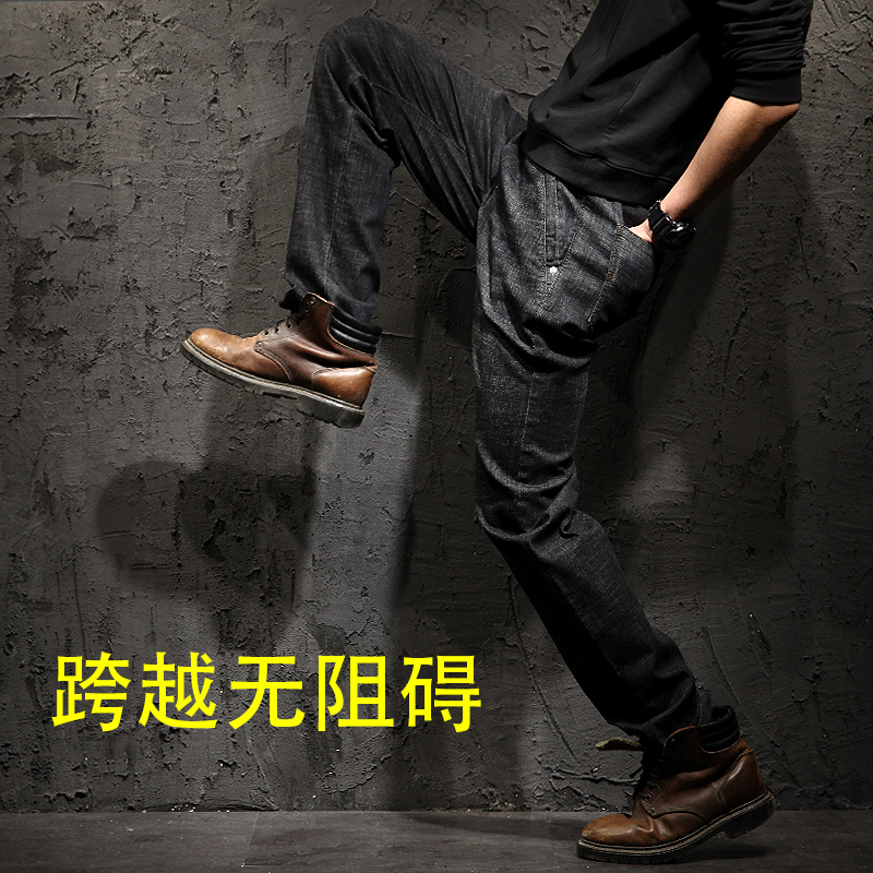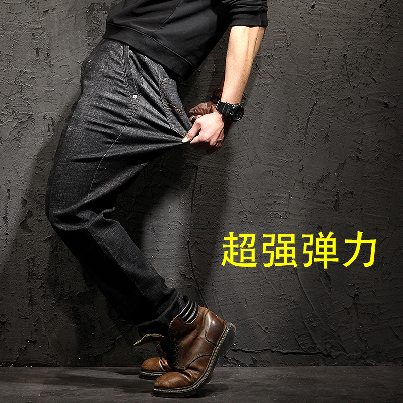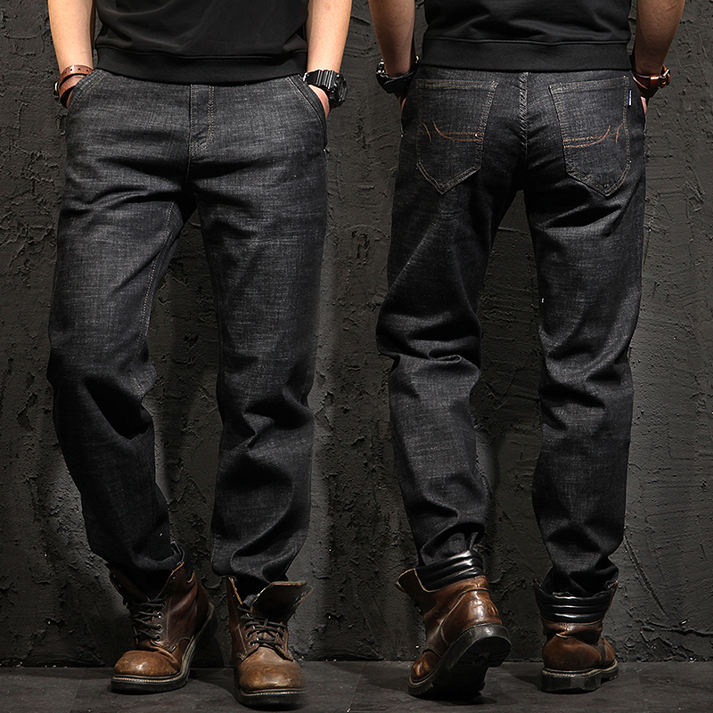 Autumn and winter jeans men's loose elastic straight tube plus fertilizer plus size fat men plus velvet casual long pants tide