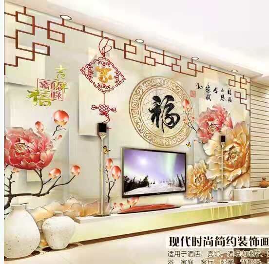 European-style entrance background wall tile 3d modern simple TV background wall inlaid with gold carved microcrystalline stone Rich more than