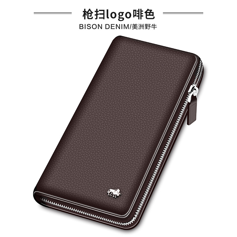 American Bison Men's Long Edition Leather Wallet Business Clutch Bag Solid Color Multifunctional Mobile Phone Bag Leather Clutch Bag