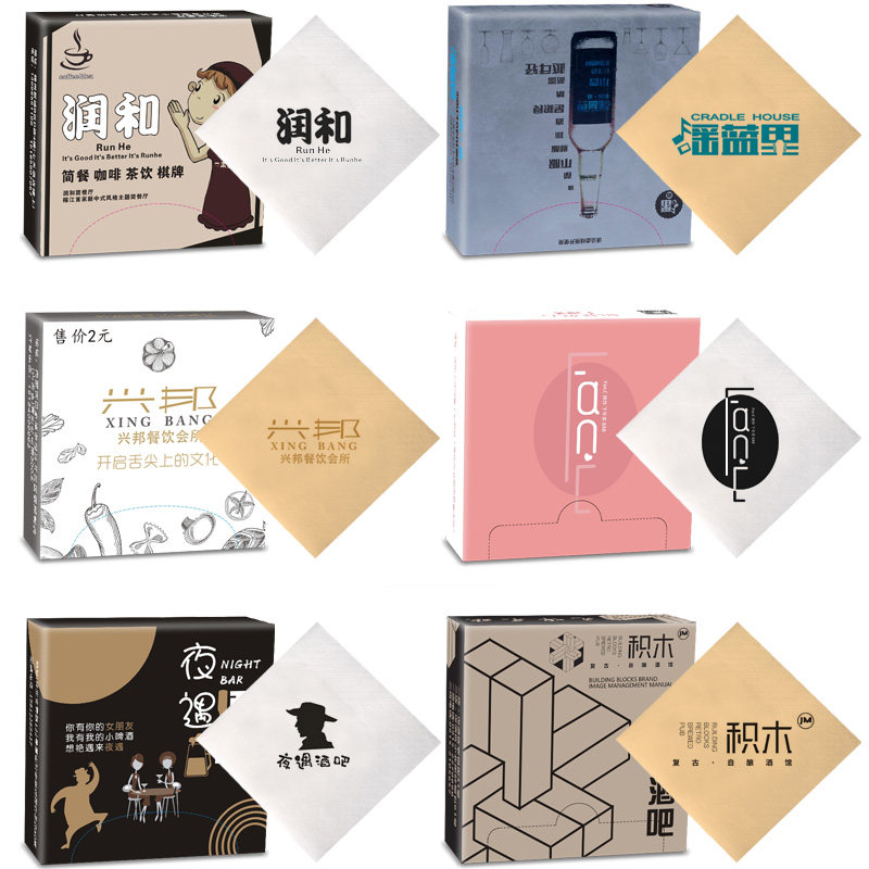 Boxed custom advertising paper towel outer box custom logo dining room promotional paper towel napkin