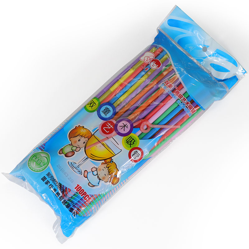 Double Child Color Art Sucker Disposable Telescopic Juice Drink Milk Tea Coke bending styling long straw