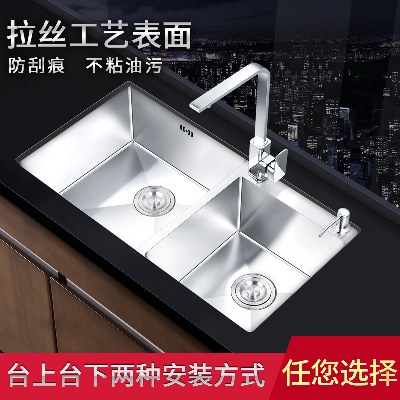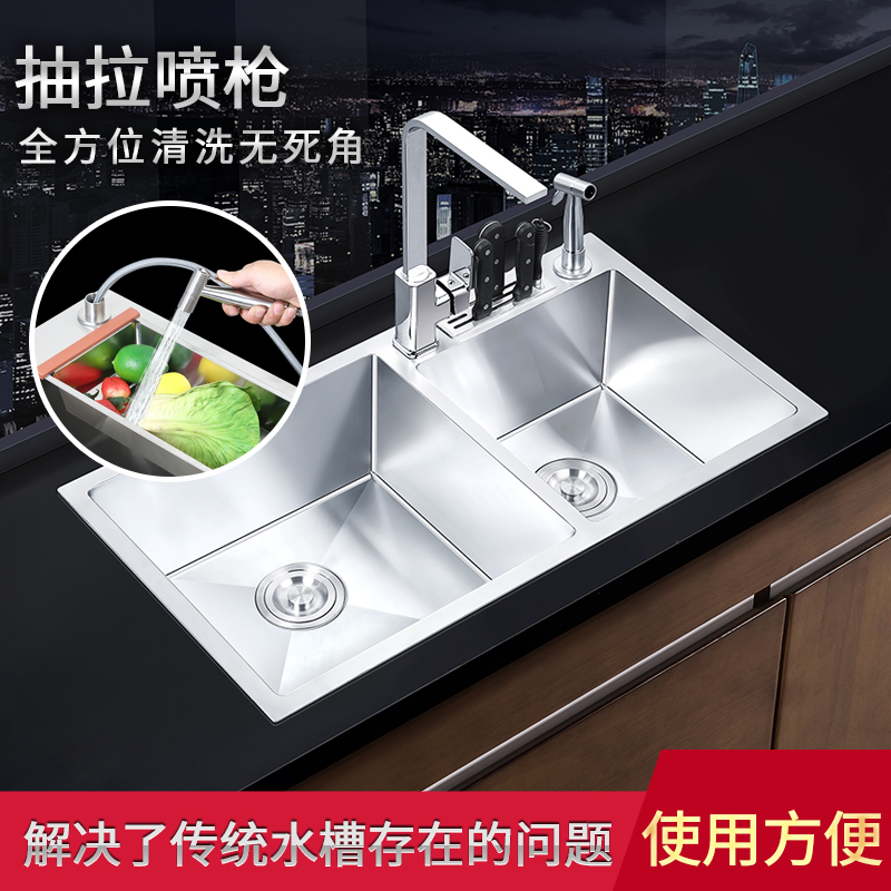 Kitchen with knife holder manual double sink stainless steel sink package thickened 304 table and down washing basin dish washing pool