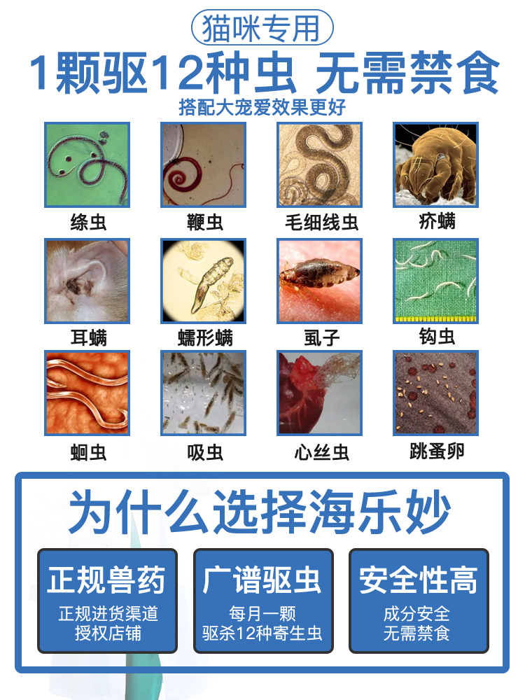 Haile Miao cat body deworming drug Flea mite roundworm tapeworm cat with 2-8kg single valence Haizheng deworming drug