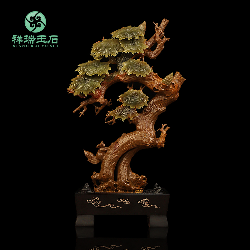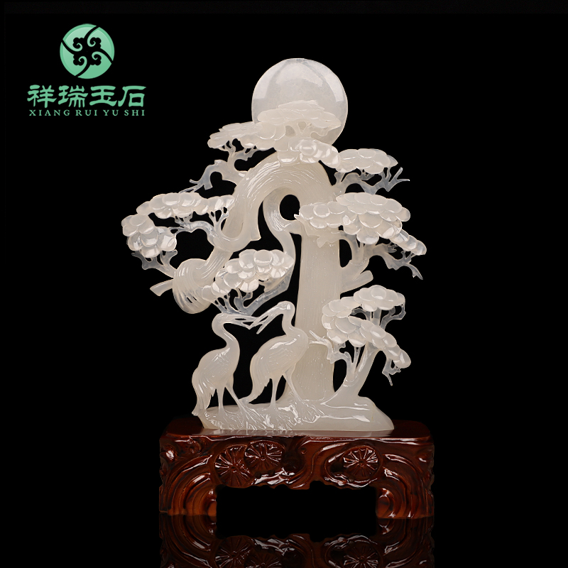 Natural jade pine crane yearly furniture high-end living room modern minimalist wine cabinet office recruited wealth decoration crafts