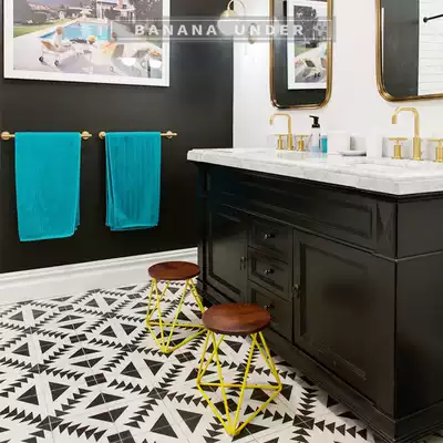 Under the banana) front) black and white fish bones Nordic powder room tile kitchen non-slip floor tiles balcony bathroom wall tiles