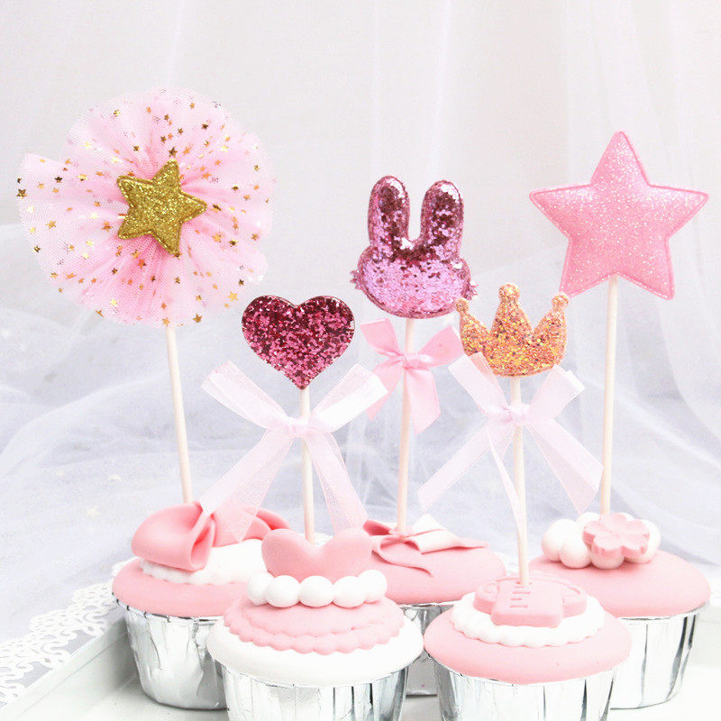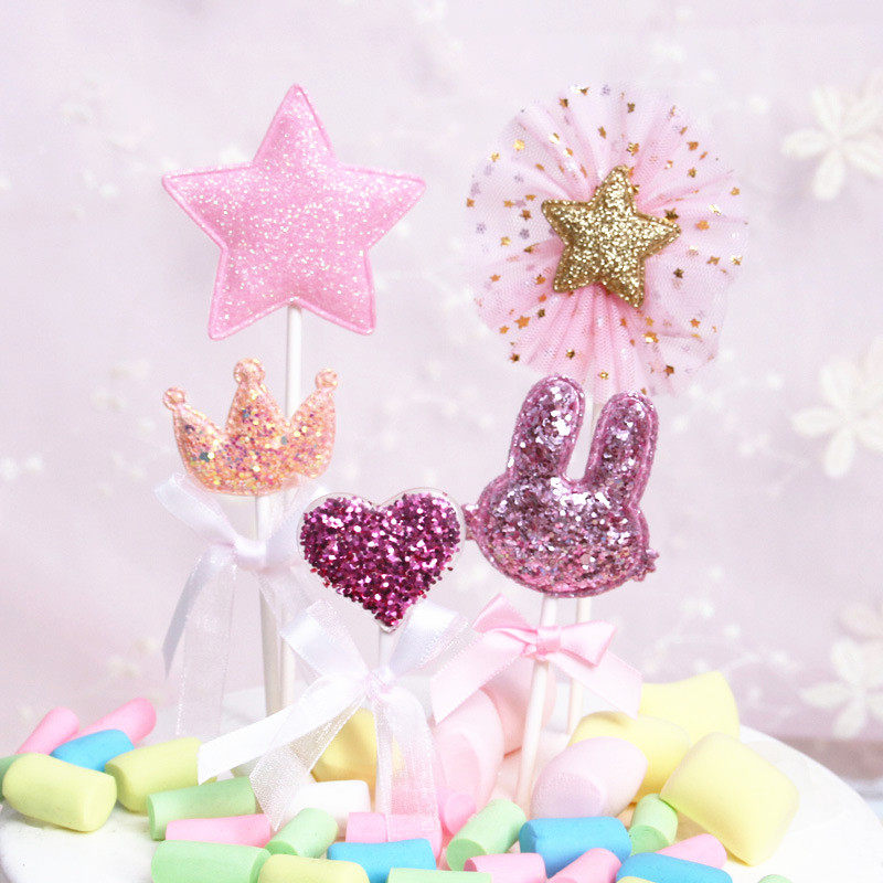 Fresh pink new cake decoration plugin love lace dessert crown rabbit decoration sign