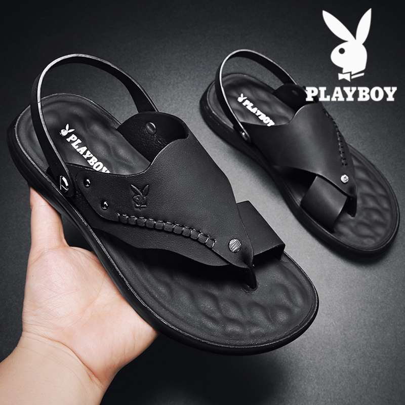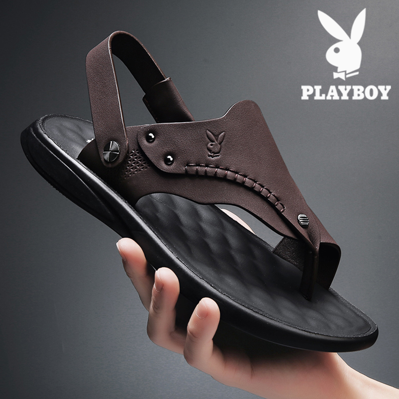 Floral Playboy sandals Men's damp Summer New headlayer Bull Leather Dual-use Men Casual Slippers Genuine Leather Beach Shoe Men