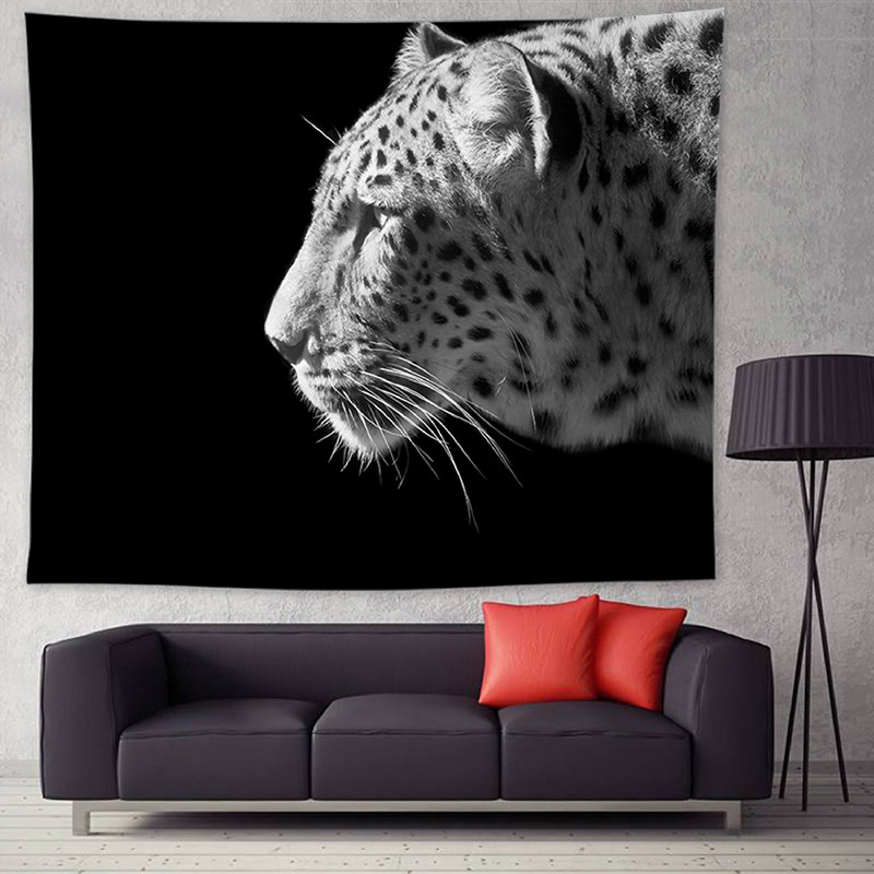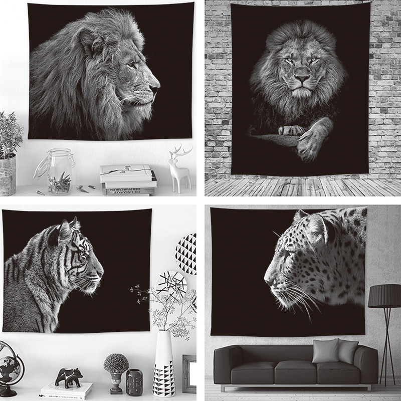 Nordic ins hanging cloth black and white lion tapestry Bed cabinet cloth cover cloth decorative blanket Hanging painting Bedroom tapestry decorative painting