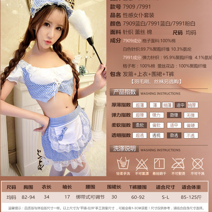 Playful Sexy Plaid Maid Dress Sweet Stretch Lace Maid Uniform Suit Cosplay Lingerie
