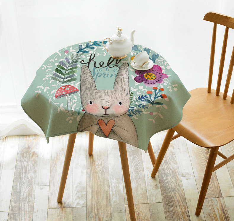 Hemp-made original small fresh dining table cloth waterproof cotton linen oil stain living room rabbit tea table cloth rectangular dining room