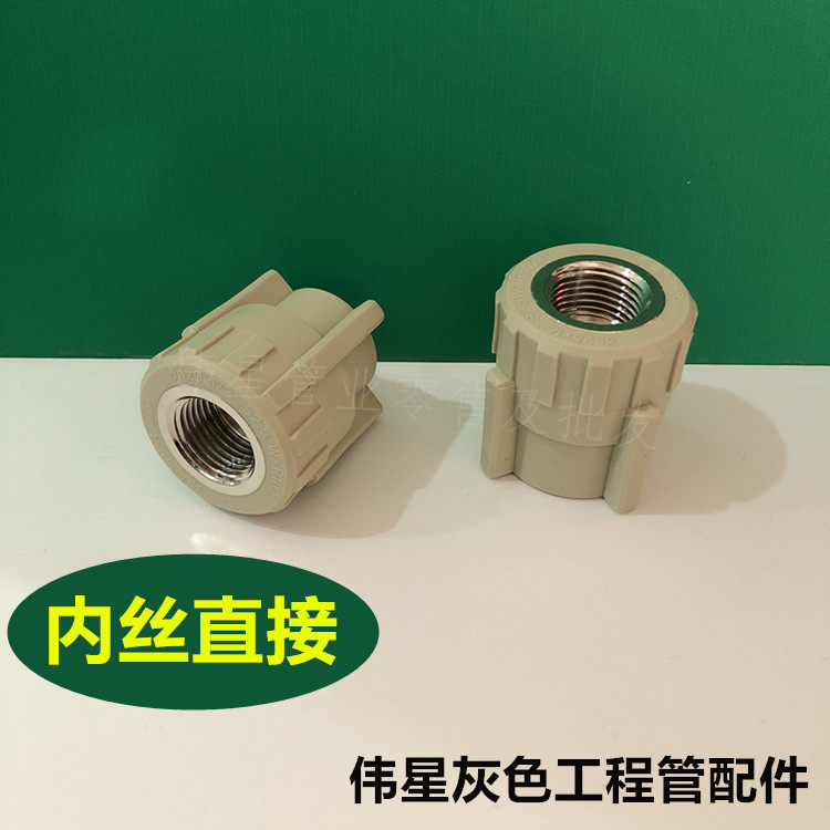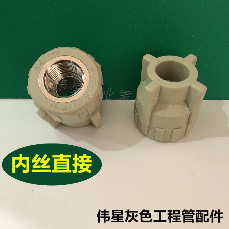 Weixing gray PPR hot and cold melt water pipe fittings female thread connector inner wire straight through direct D20-75 with wire