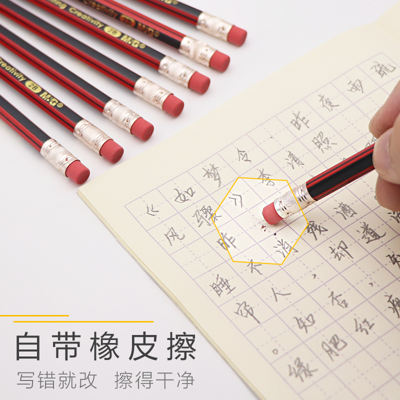 100 morning light pencils for elementary school students lead-free non-toxic 2 than hb children's kindergarten with beginners 2b hexagonal log pencil exam dedicated to the first grade stationery supplies with eraser head