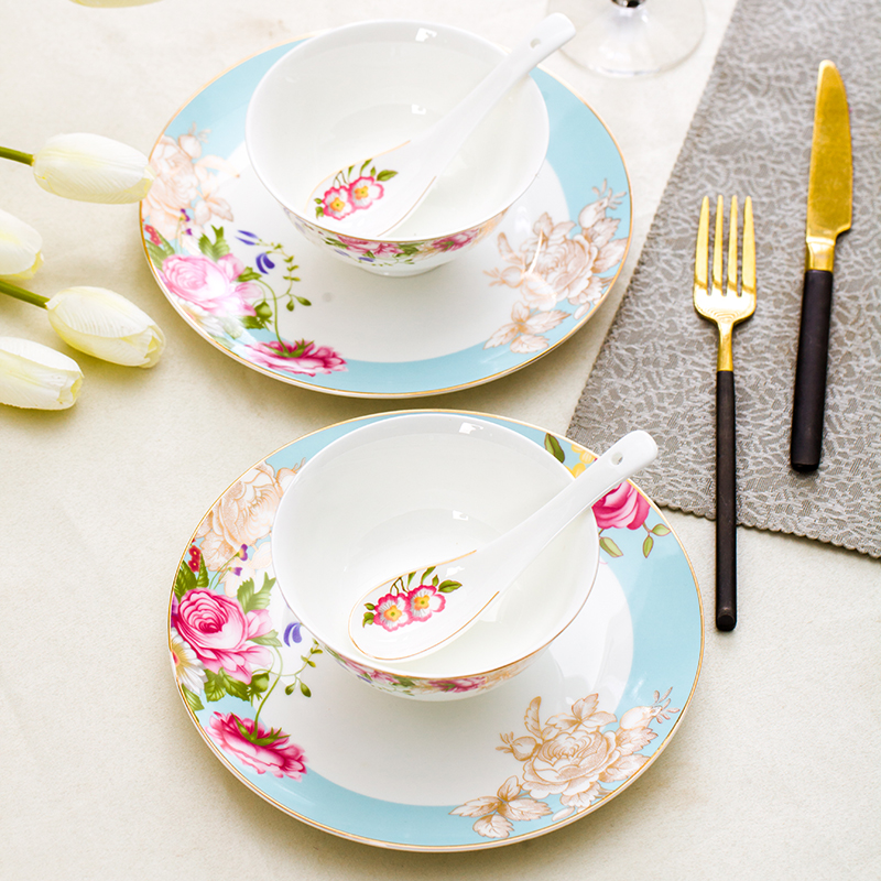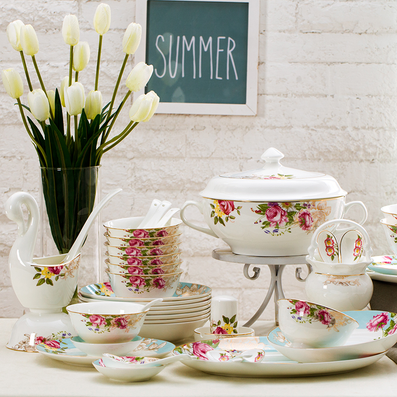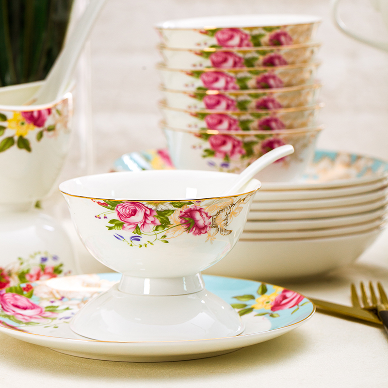 Chinese ceramic tableware suit wedding giftsDetown high-end bone ceramics eating dish dish European household combination