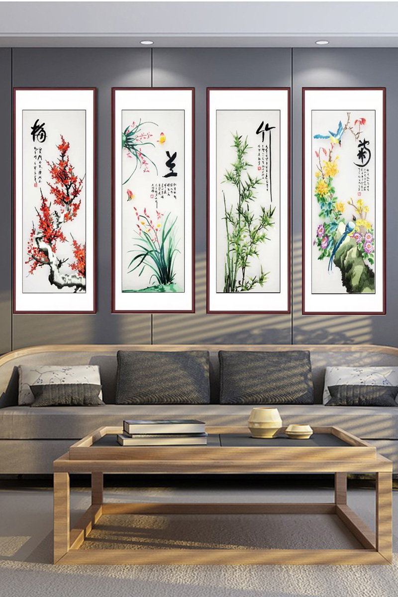 Su embroidery finished hanging painting silk hand embroidery painting living room decoration painting plum orchid bamboo chrysanthemum Shu embroidery painting