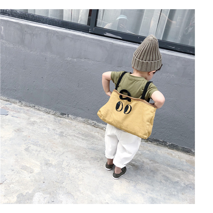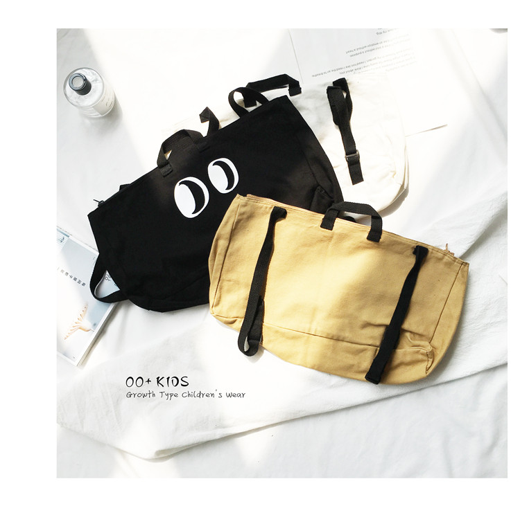 Source Source Home Children Canvas Bag Large Eyes Double Shoulder Bag for men and women 100 hitch Han version casual bag
