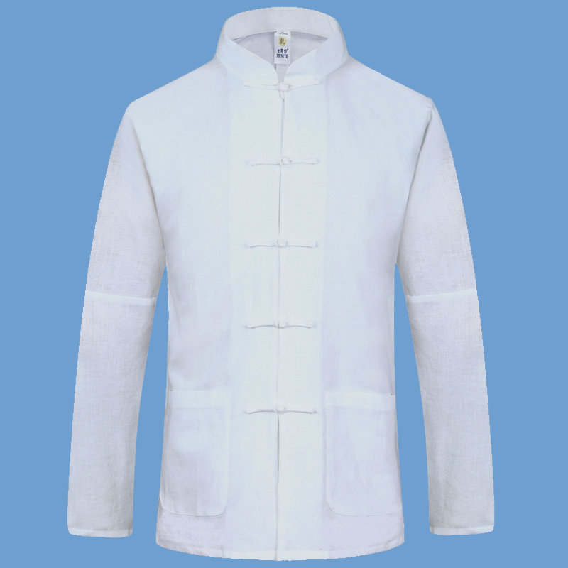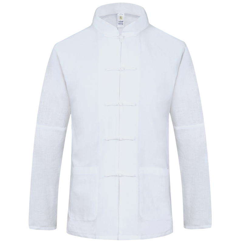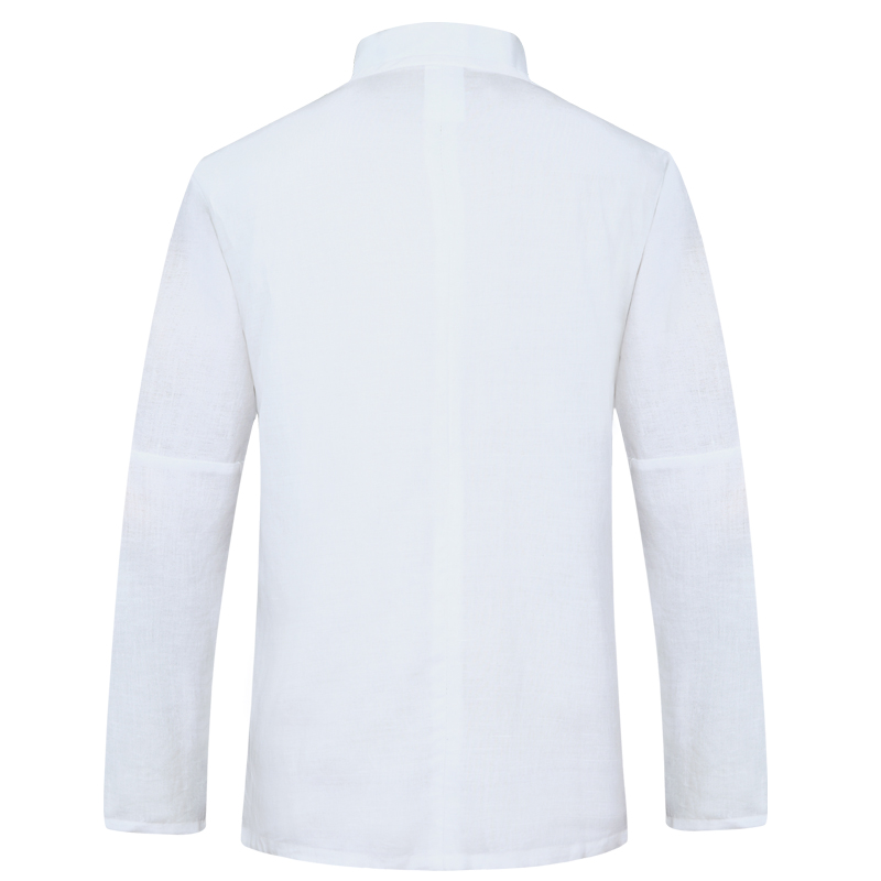Spring and summer thin men's cotton and linen Tang suit men's buckle Chinese style linen long-sleeved shirt loose top bottoming shirt