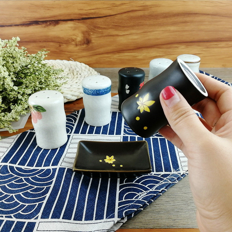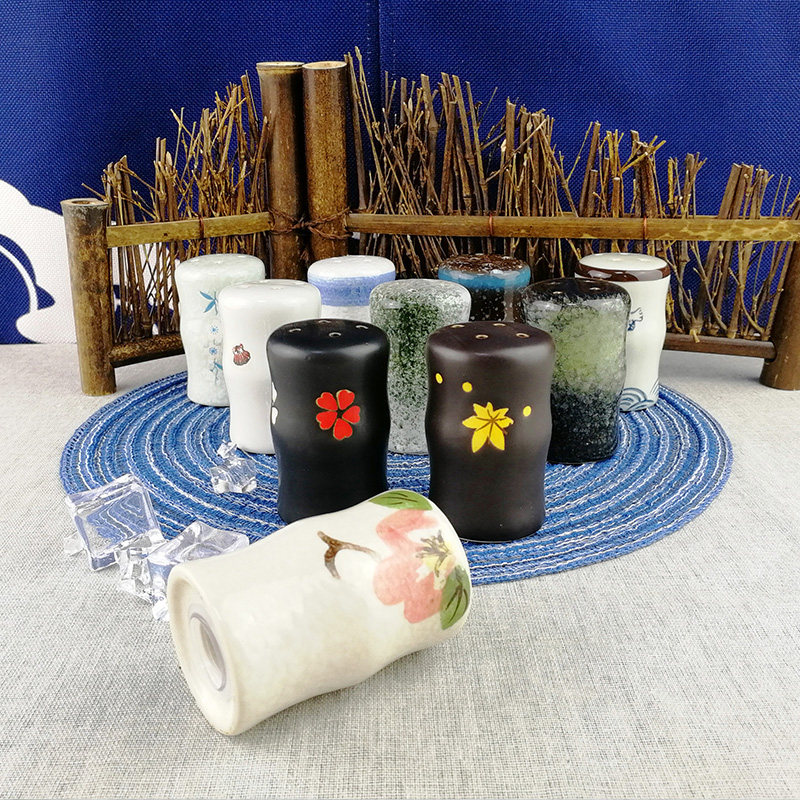 Puffer fish (seasoning pot with hole) dark blue (seasoning pot with hole) green rhyme (seasoning pot with hole) maple leaf (seasoning pot with hole) cherry blossom (seasoning pot with hole) peony (seasoning pot with hole) blue ring (with hole