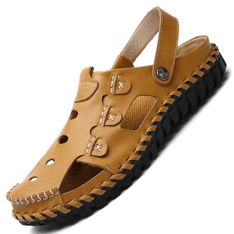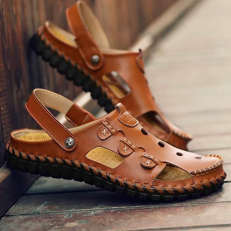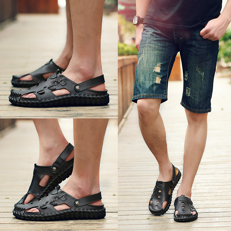 Summer sandals men's leather casual beach shoes men's Baotou Korean version trend men's leather sandals fashion slippers men's shoes