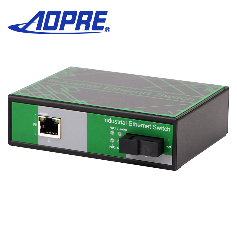 AOPRE Industrial Gigabit 1 Optical 1 Electric Ethernet Switch Singlemode Single-Fiber DIN Rail Type