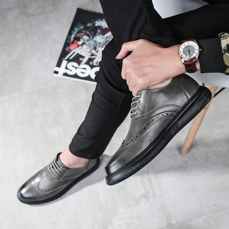 Summer Retro Fashion Tide Male Buloc Shoes Casual Round Head Thick Bottom Carved Leather Shoes Hair Stylist Dressers are loading men's leather shoes
