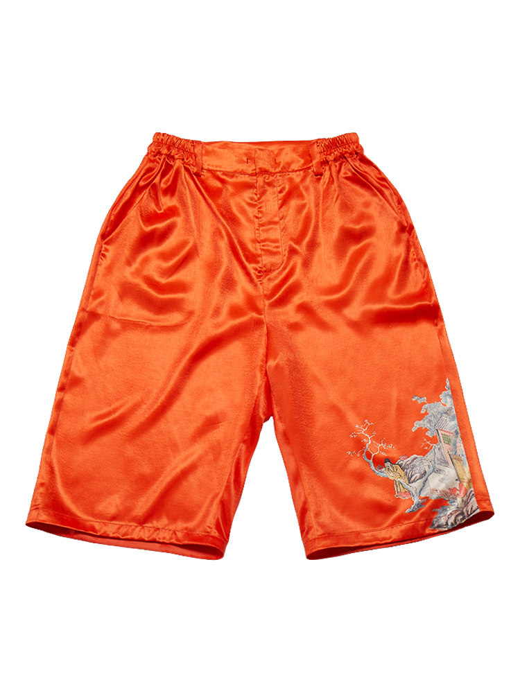 (Mustard Original) Shuibei Chinese Style Personalized Printing Design Loose Profile Medium Pants Casual Half Pants Women's Models