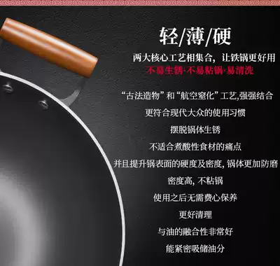 Wang Yuanji cast iron pot Household wok Iron pot non-stick pot Handmade iron pot thickened iron pot uncoated