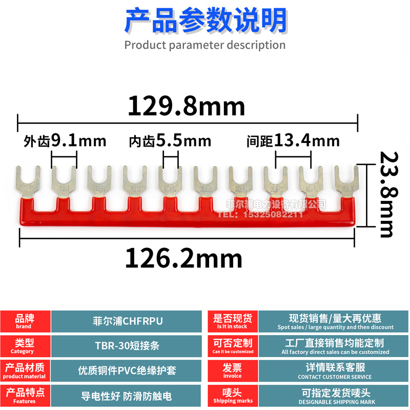 Phelp pure copper TBR-30A wiring end subtable short connection bar interconnector strip with insulating sheath