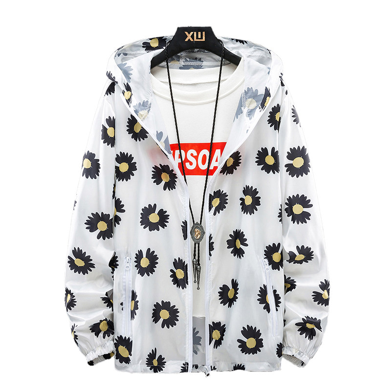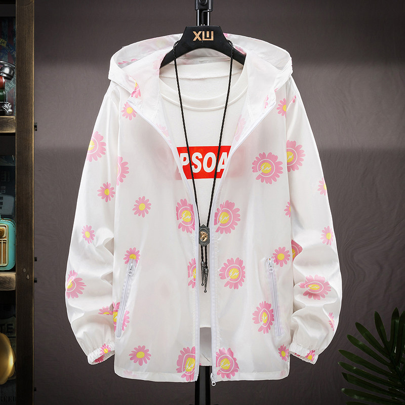 Skin clothing men and women ultra-light breathable anti-UV beach jacket couple loose fashion printing sunscreen clothing summer