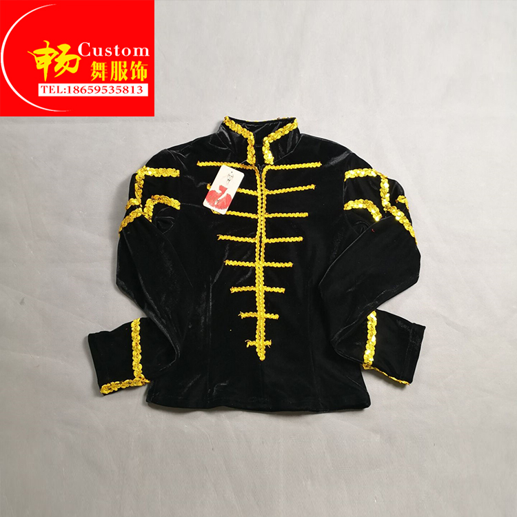 Customize men's ballet dance suit aerobics gymnastics black Phnom Penh Collar Male's performance outfit new