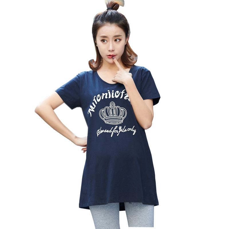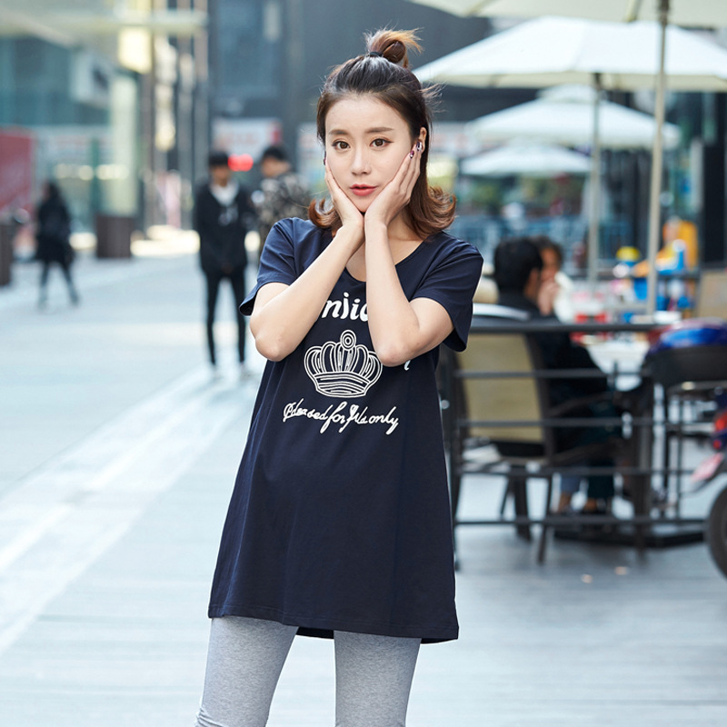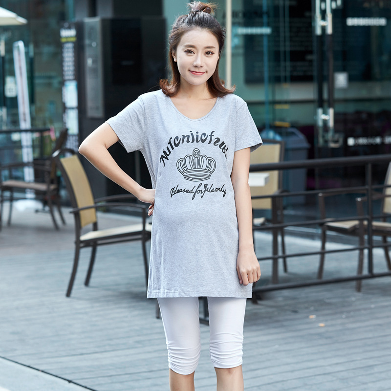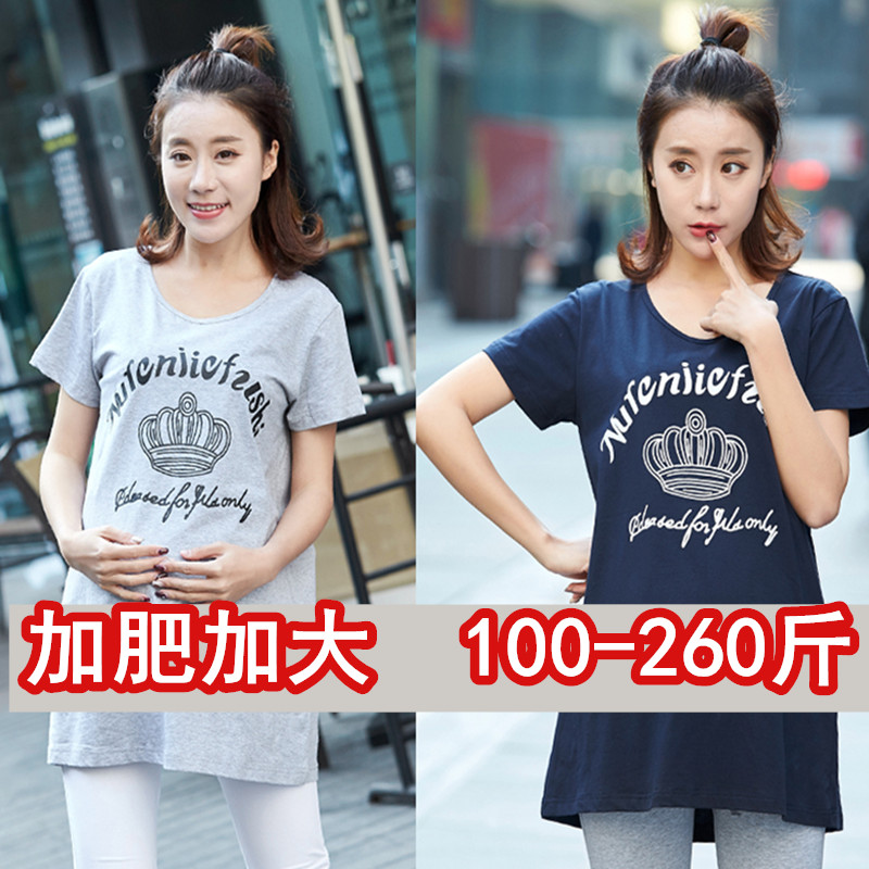 Pregnant women with 200 pounds of summer fat plus mid - long pregnant women short - sleeved t - shirt women summer loose coat pure cotton