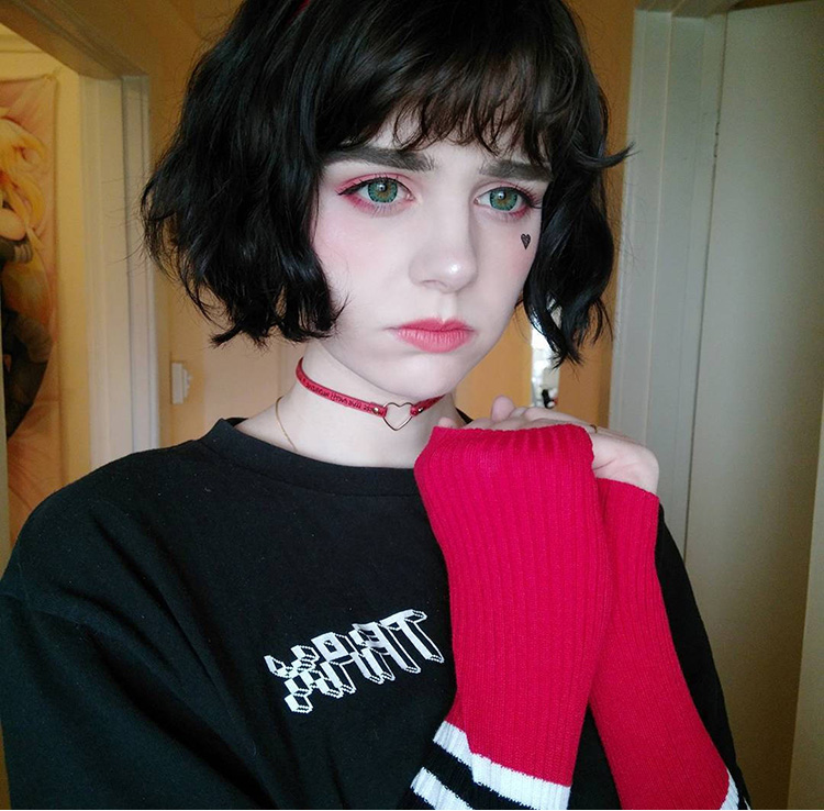 Wig female short hair black short curly hair bobo head buckle cute face repair wig air bangs net red collarbone hair