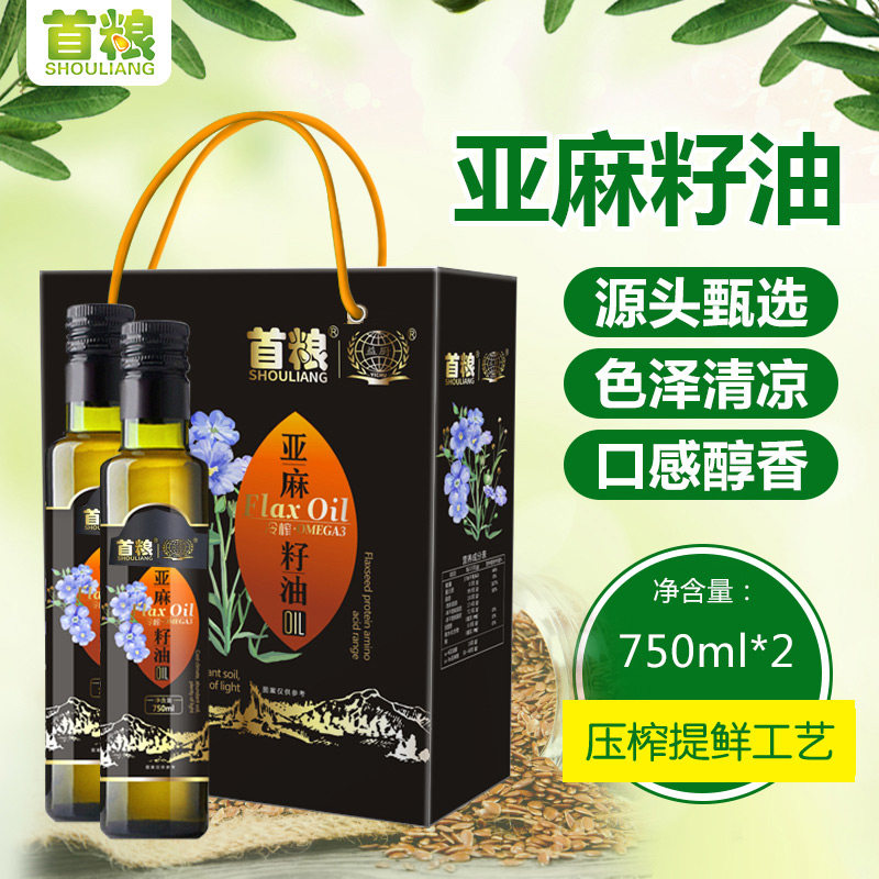 First Grain Flaxseed Oil Gift Box 750ml*2 Bottle Multi-Provincial Pressed Vegetable Oil Cooking Oil Gift Pack