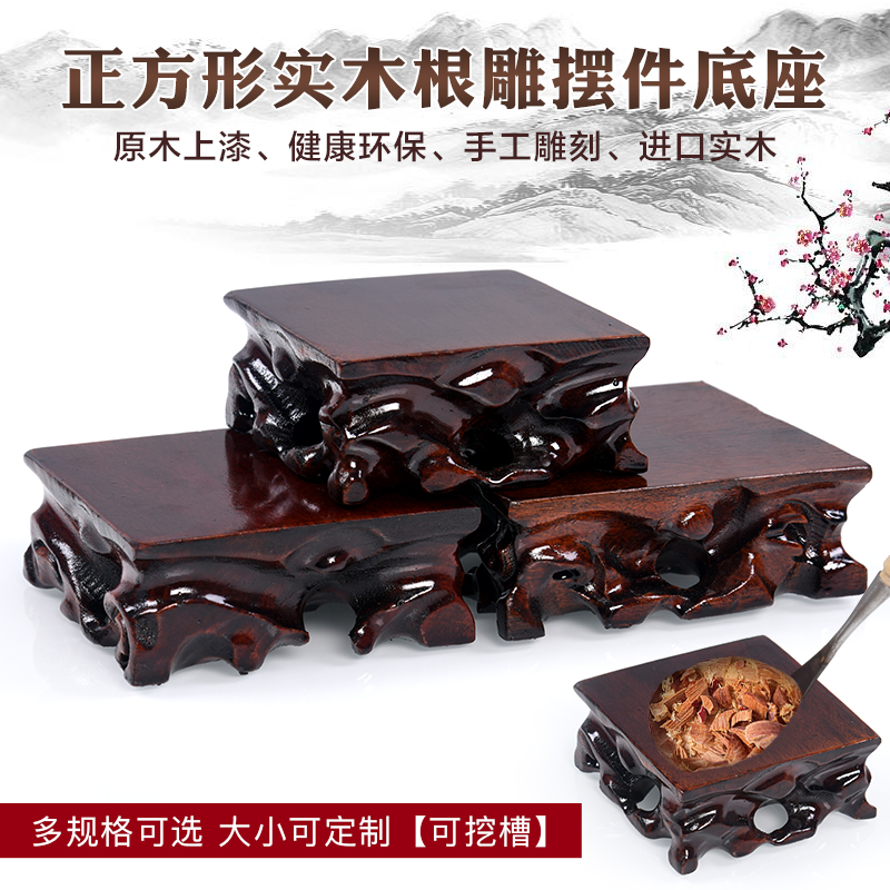 Solid wood root carved stone base can dig groove flower pot View swing piece round jade head wood Buddha Statue technique Gift swing decorated base