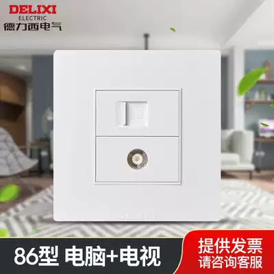 Deli Digital network TV panel type 86 wired closed-circuit computer TV network cable Broadband TV weak power socket