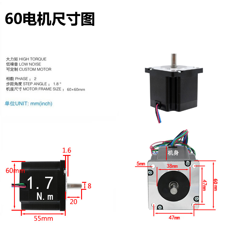 60 stepper motor Great torque 1 76N m fuselage 55mm two-phase 4-wire 1 8-degree engraving machine stepper motor