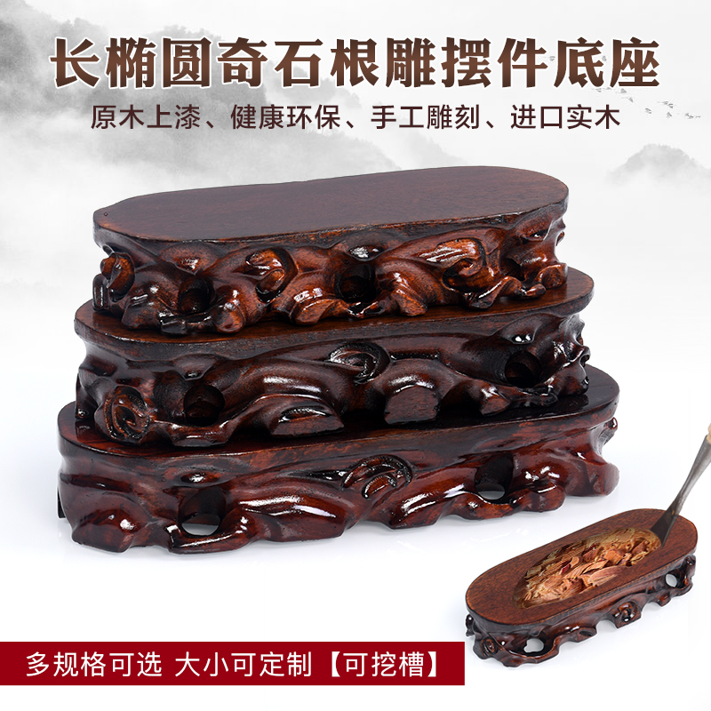 Chi Stone Base Solid Wood Excavated Groove Wood Carving Root Carved Flower Pot View Base Swing Piece Jade Head Base Air Conditioning Base